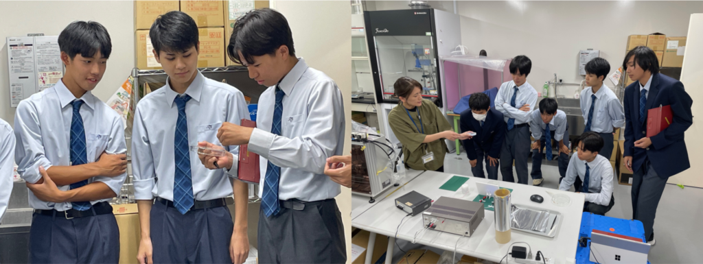 当日は、弊社代表の橋本社長からcuraraとPVCGELの説明をお聞きいただいた後、皆さんにcuraraの体験とPVCGERLの見学をしていただきました。電子機械工学を学んでいらっしゃる皆さんです、体験や見学を経験して更に興味を持って学びを進めて頂けると嬉しいですね。
